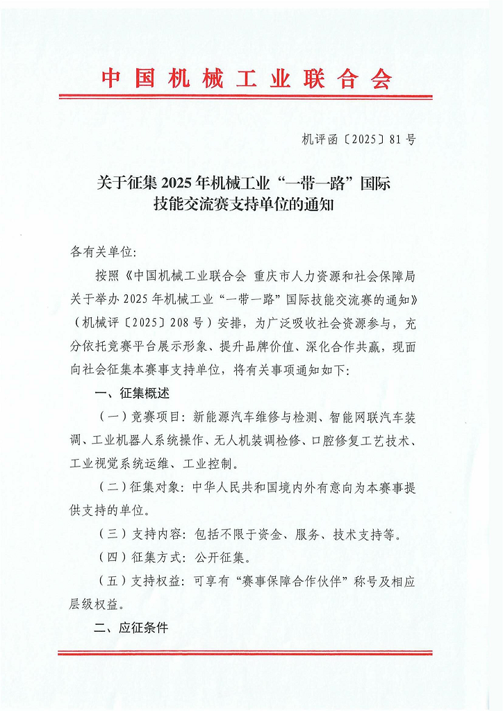 關于征集2025年機械工業“一帶一路”國際技能交