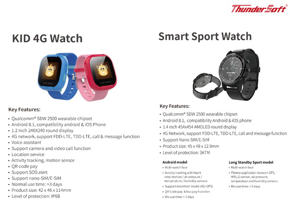 在可穿戴設備領域,基于Qualcomm芯片平臺,中科創達可以提供從硬件集成、驅動層、操作系統、人工智能算法、上層應用到云的一站式可穿戴設備解決方案。目前,中科創達已經可以提供基于Qualcomm® Snapdragon Wear SDW 2500平臺的Kid 4G Watch和Smart Sport Watch參考設計。